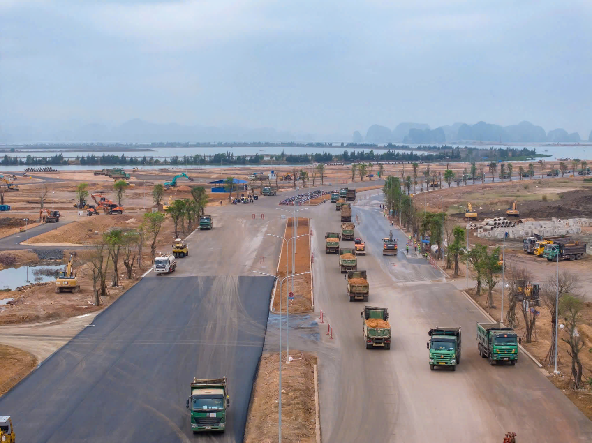 Dự án đang tiến triển mạnh mẽ với sự hỗ trợ của nhiều thiết bị xây dựng tối tân, sẵn sàng hình thành khu đô thị xanh bên vịnh Hạ Long tiến độ 3 ca 4 kíp đúng cam kết đưa ra