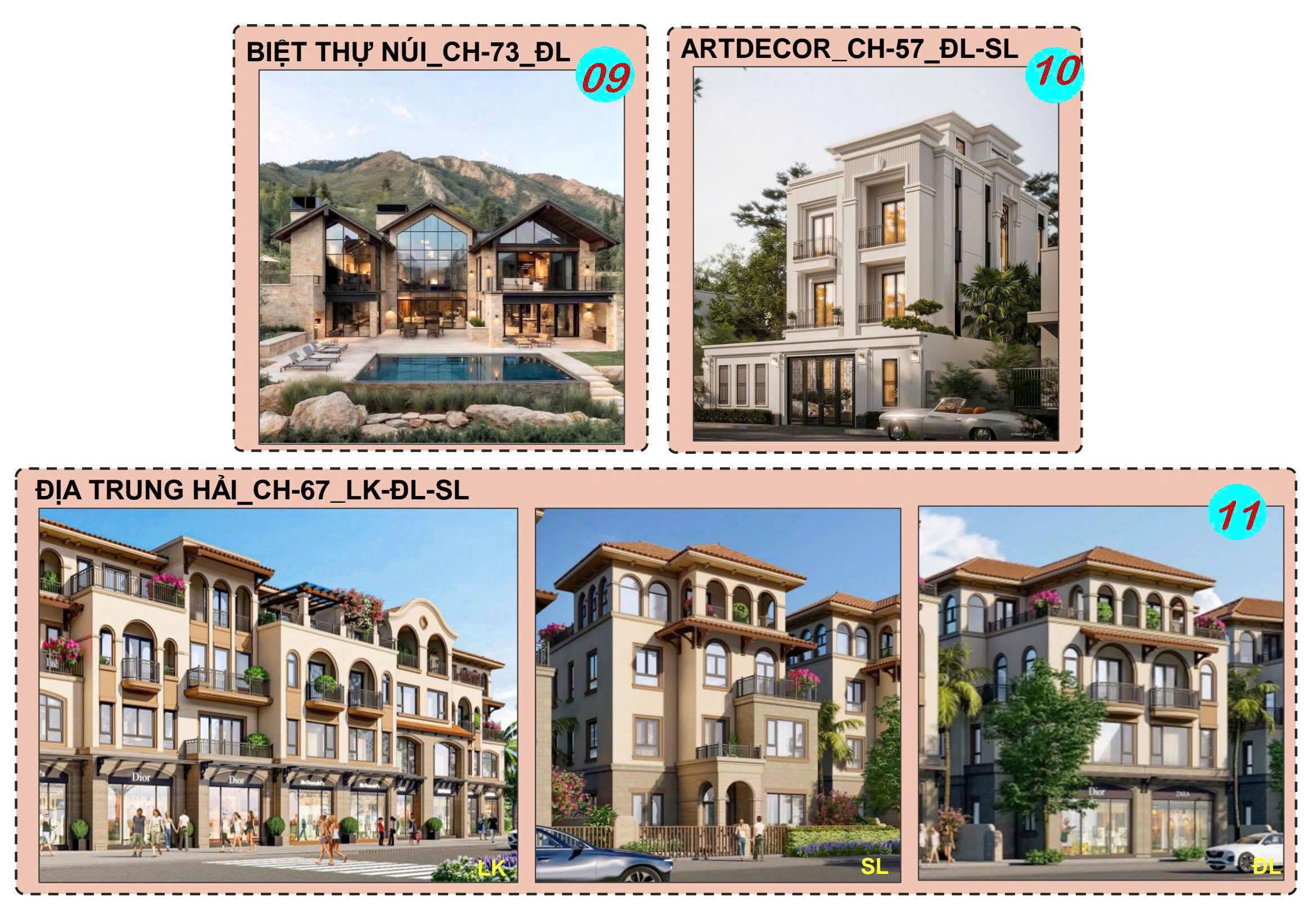 – Loại hình sản phẩm : Biệt thự, Liền kề, nhà phố thương mại Shophouse, chung cư, khách sạn cao cấp,